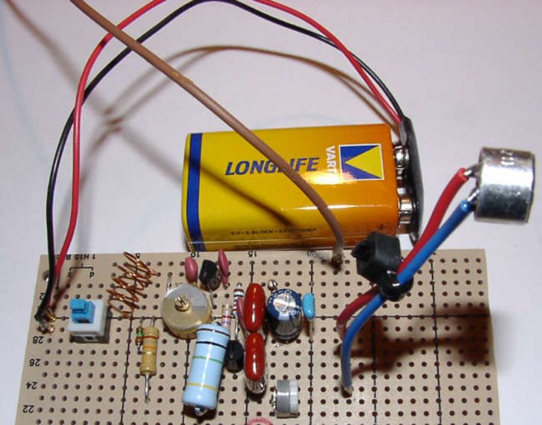 Durch den Sendebereich auf UKW, kann als Antenne ein simpler 75cm langer Draht verwendet werden und die Schaltung hat ca. 9-Volt Block Größe, d.h. sie passt sogar in eine Zigaretten-Schachtel. Als Empfänger wird ein einfaches Radio verwendet.